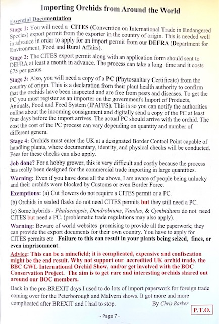 Please find below some useful information on Importing/Exporting Orchids written by Chris Barker in a recent British Orchid Council (BOC) leaflet.