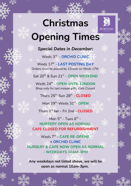 Nursery & Café will then be OPEN as normal, weekdays 10am-3pm.